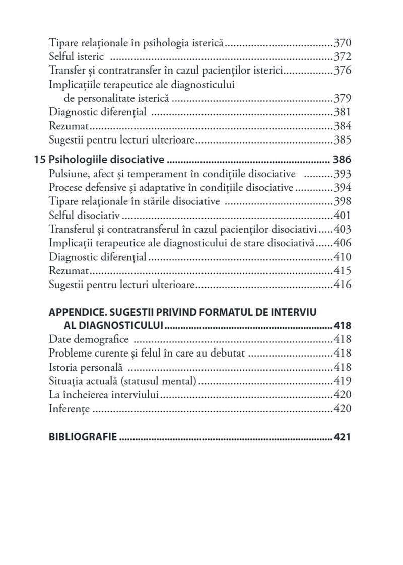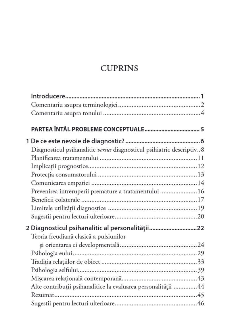 “În această carte accesibilă şi plină de pasiune, McWilliams furnizează principii organizatoare care să ne ajute să înţelegem psihopatologia fără a suprasimplifica sau a evita întrebările dificile ridicate de diagnoză. Când citeşti cartea lui McWilliams te simţi ca şi cum o cunoşti. De la un capăt la celălalt al cărţii răzbate extraordinara sa umanitate, înţelepciune, un simţ profund etic, preocuparea sensibilă faţă de pacienţii săi. A doua ediţie include şi o prezentare actualizată a teoriei ataşamentului, trimite la contribuţiile teoriei relaţionale şi la cercetările din neuroştiinţe şi integrează înţelegerea contemporană a somatizării şi apărării. Obligatoriu de citit pentru orice clinician în formare.”